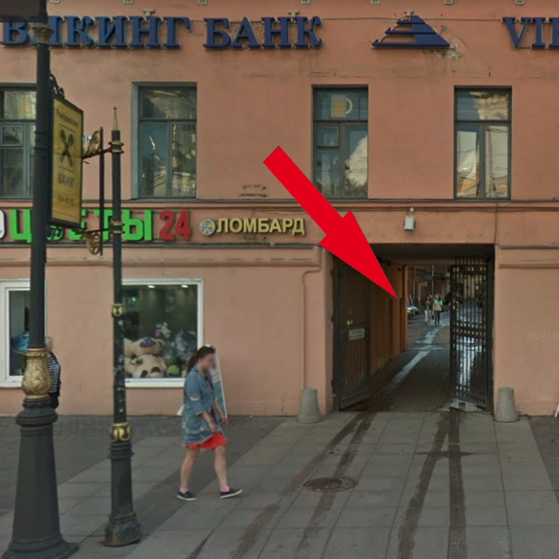 Вход под арку со стороны Владимирского проспекта. Пройдя под арку пройдите прямо примерно 20 метров и поверните направо к крыльцу, 1-й корпус, вход в бизнес-центр. Поднявшись на лифте на 4-й этаж идите налево до офиса 423.